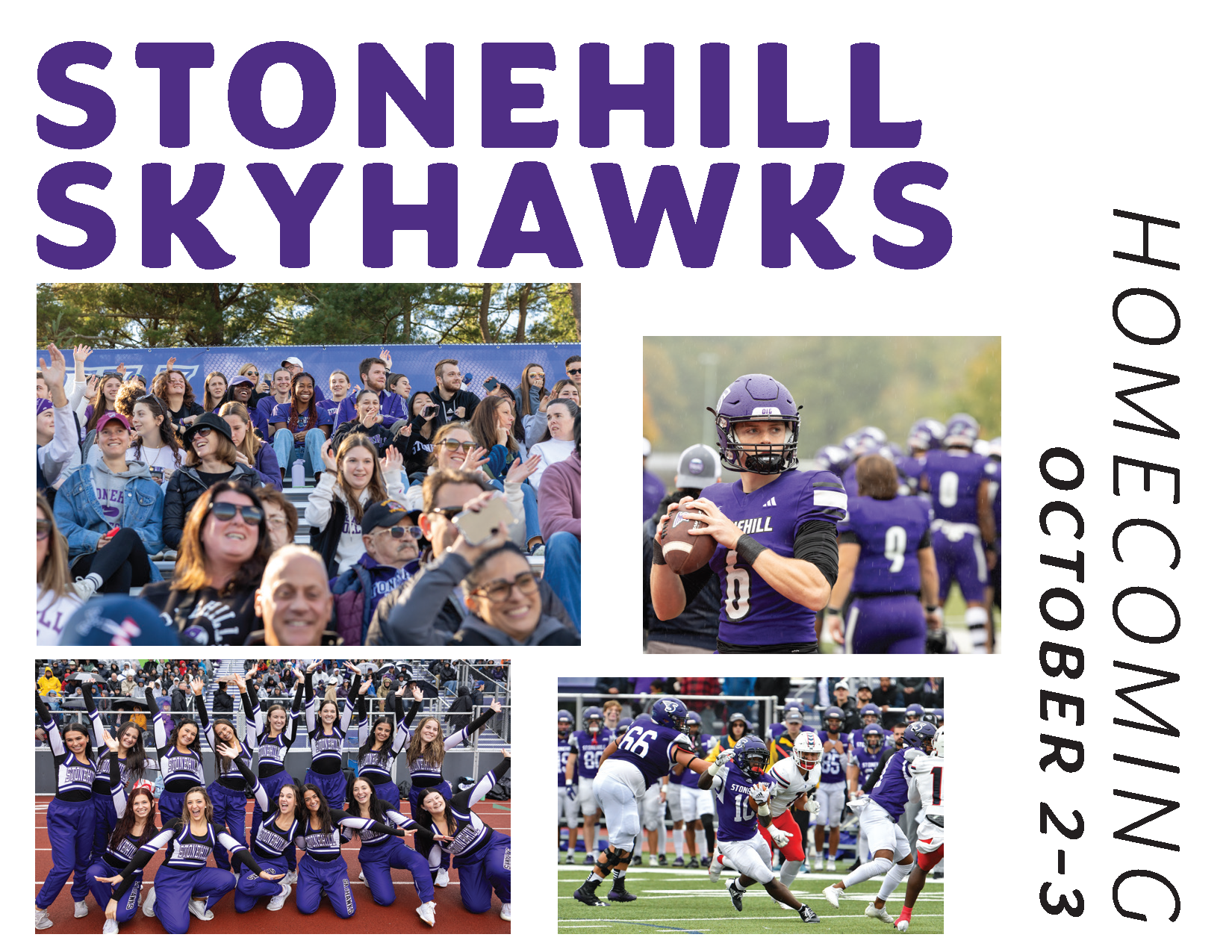 After feedback was provided, iterations continued to focus on “Stonehill” as a whole, as its mascot has changed over the years, and the Alumni Office wanted to ensure that all alumni feel included. The photographs used were football-related because that is the main event. A final was not chosen; however, this process highlights my ability to adapt to feedback and incorporate it into a tangible visual communication piece.