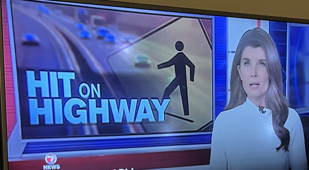 Preview of a story about a pedestrian getting hit on the highway. Format: PROJECTOR.